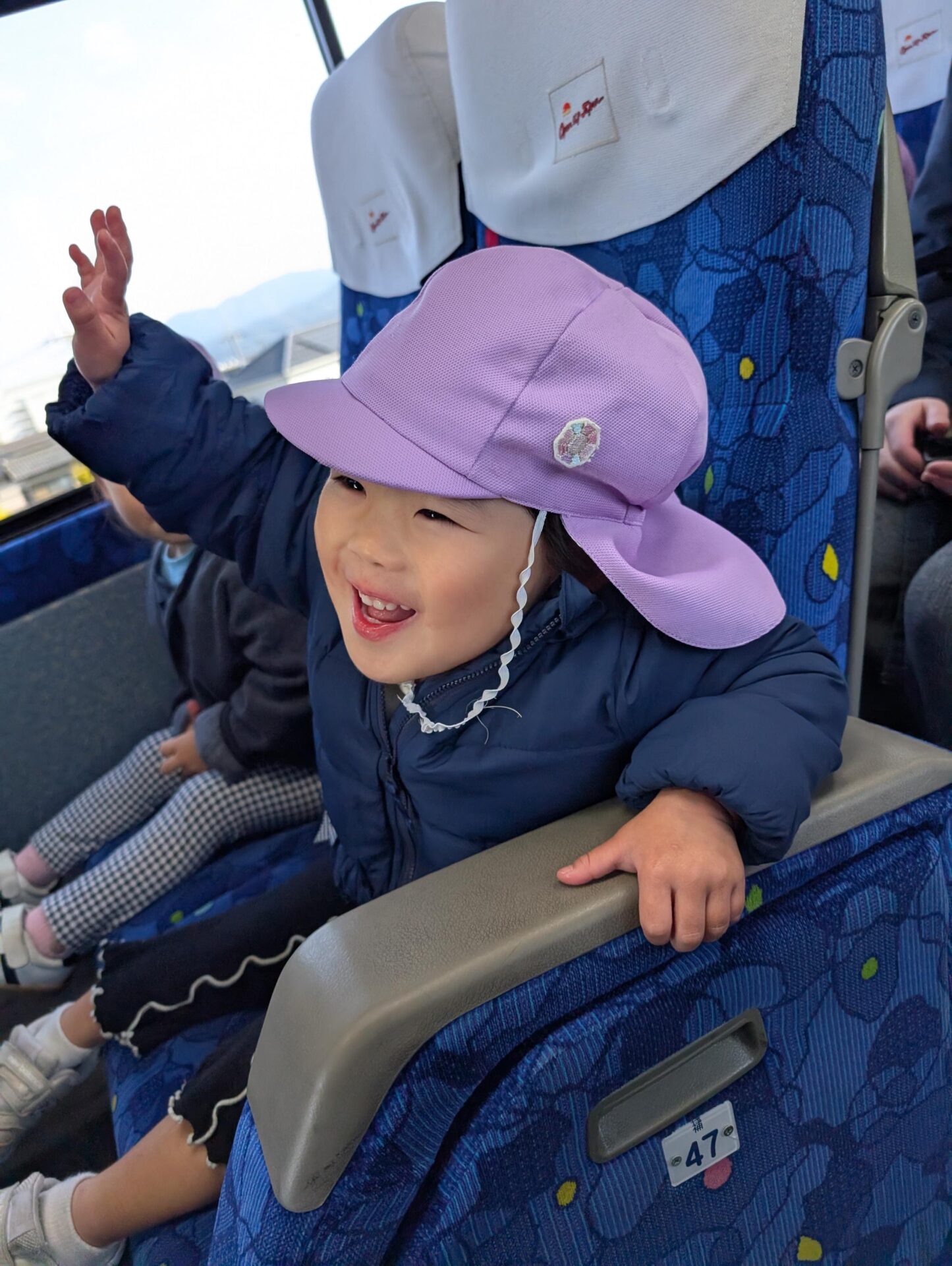 バスの中では、お友だちや先生とお歌をうたったり窓から琵琶湖を見たりと、お楽しみたくさんでこどもセンターを目指しましたよ🚌