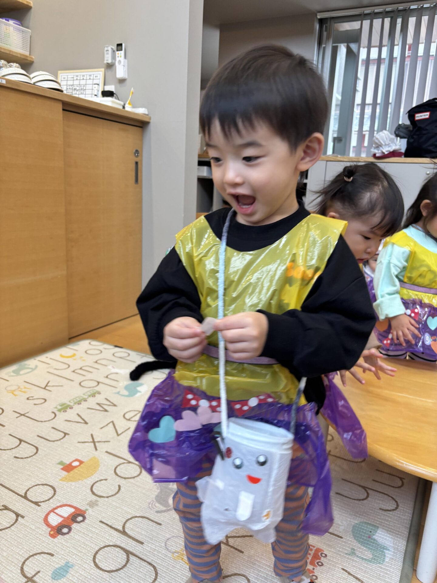 何日も前から準備をし、試しに衣装を着てみたり「トリックオアトリート!」のおまじないを言う練習をしたり…✨ワクワク・ドキドキが止まらない様子で、お家でもハロウィンパーティーが楽しみなことをお話してくれていたお友だちもたくさんいました😉